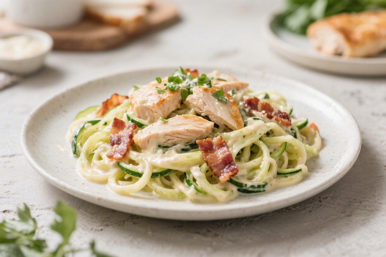 Keto Chicken Bacon Alfredo Zoodles – Creamy, Comforting, and Low-Carb